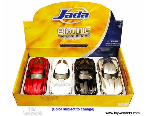 92387VA Jada Toys Bigtime Muscle - 2009 Chevy Corvette Stingray Concept Hard Top. 1:24 scale diecast collectible model car. This Chevrolet Corvette Sting Ray is an 8"L x 3.5"W x 1.75"H die cast metal car with openable doors & hood, detailed engine. Rims: 2009 Stingray. This 2009 Chevy Corvette Stingray is manufactured by Jada Toys. 4 pcs per display box in assorted colors and 16 pcs per inner box. GM is a trademark of the General Motors Corporation.