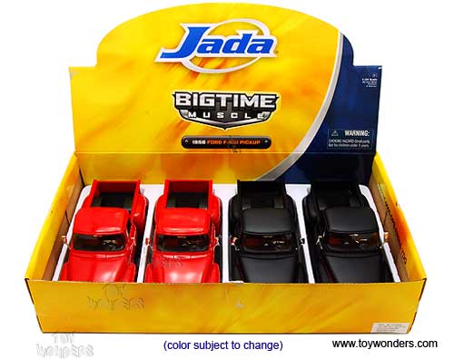 90487MP Jada Toys Bigtime Muscle - 1956 Ford F-100 Pickup Truck. 1:24 scale diecast collectible model car. This 1956 Ford F100 Pick-up is an 8.5"L x 3.5"Wx 3.25"H die cast model with openable doors, hood & tailgate, and Convo Pro rims. This 56 Ford F-100 Pickup is manufactured by Jada Toys. Big Time Muscle. 4 pcs per display box in assorted colors. 16 pcs per inner.