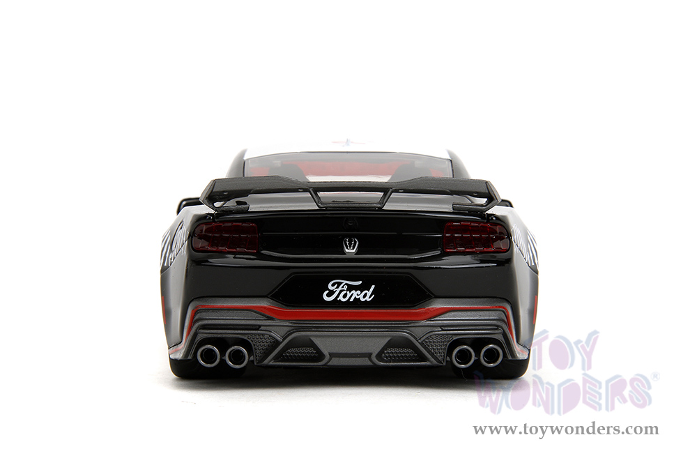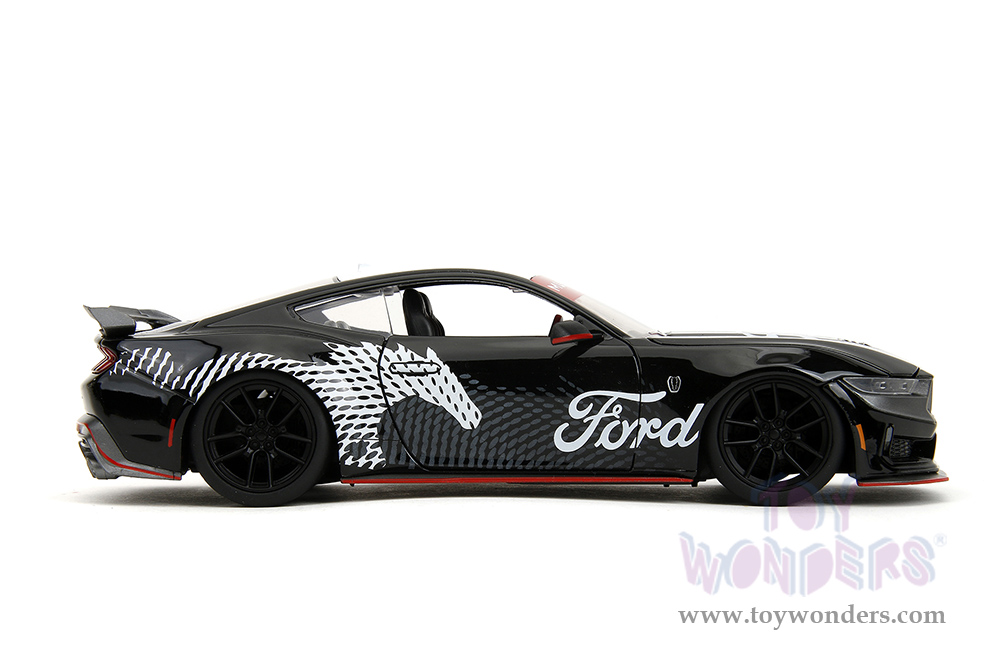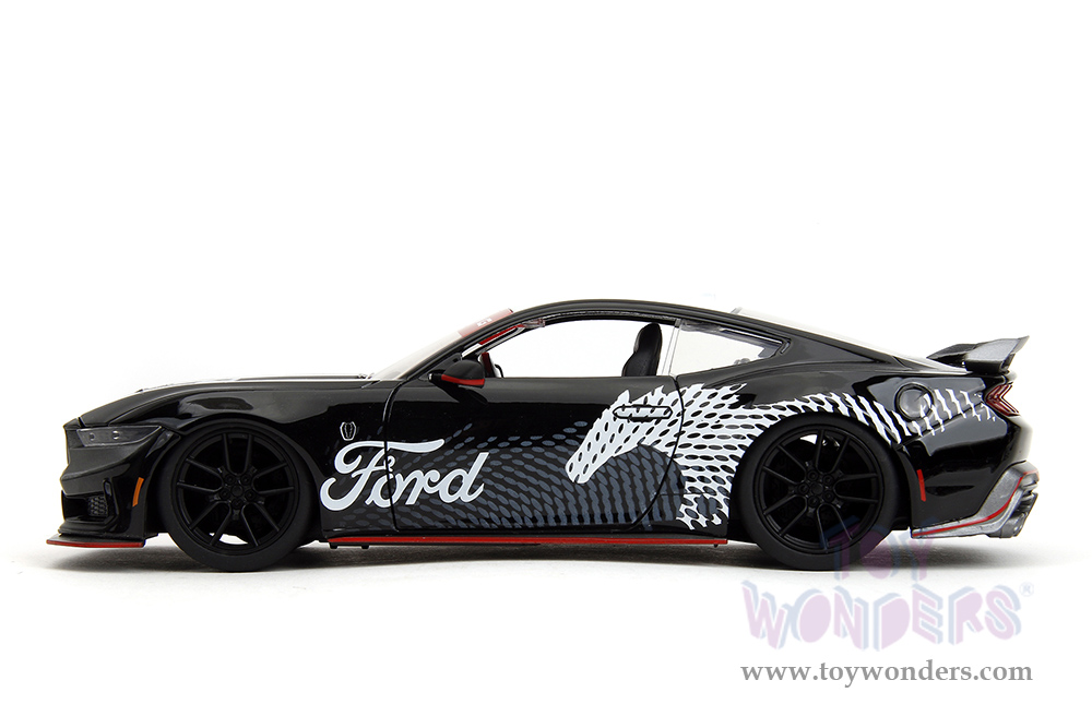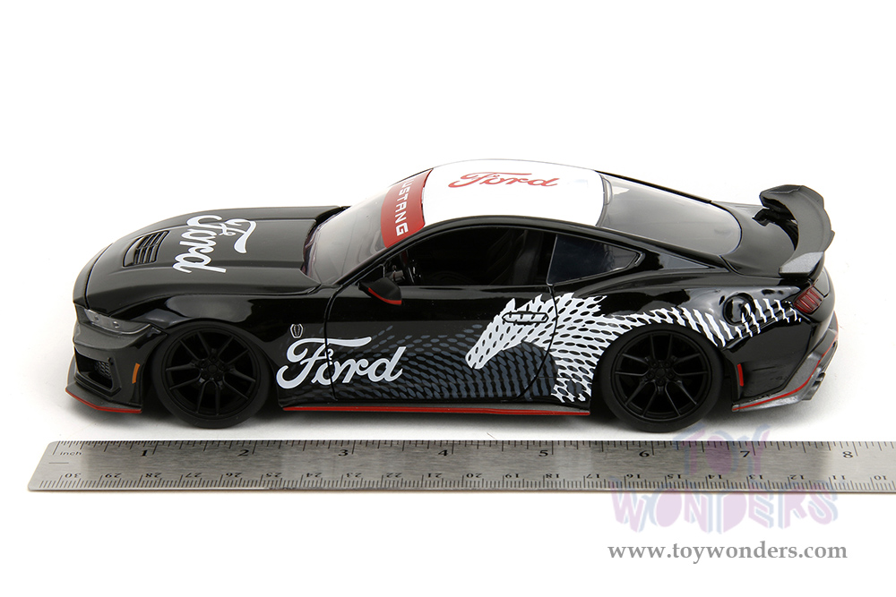 35418 Jada Toys Bigtime Muscle - 2024 Ford Mustang Dark Horse Hardtop. 1:24 scale diecast collectible model car. This Ford Mustang is an 8"L x 3.5"W x 2.125"H diecast metal car with openable doors, trunk and hood. This Mustang is manufactured by Jada Toys. 35418 is in black with white top. Individually packed in a Window Box WB. Box size: 10"Lx 4.75"Wx 4.75"H.