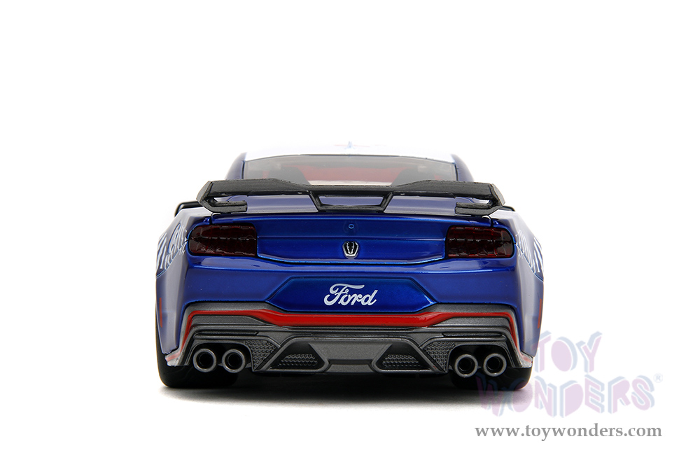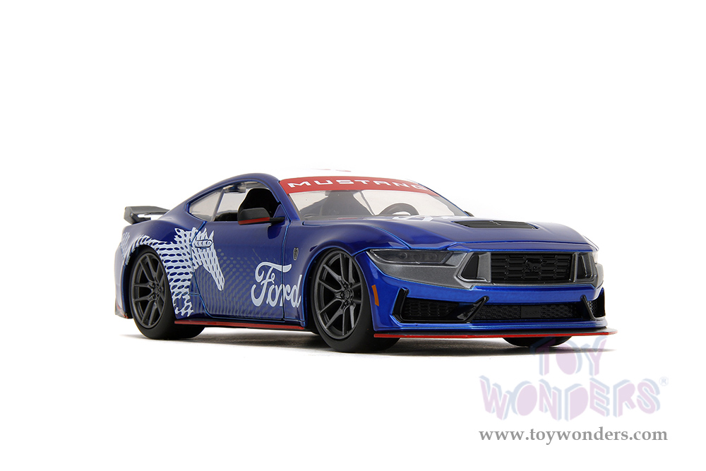 35419 Jada Toys Bigtime Muscle - 2024 Ford Mustang Dark Horse Hardtop. 1:24 scale diecast collectible model car. This Ford Mustang is an 8"L x 3.5"W x 2.125"H diecast metal car with openable doors, trunk and hood. This Mustang is manufactured by Jada Toys. 35419 is in Candy Blue. Individually packed in a Window Box WB. Box size: 10"Lx 4.75"Wx 4.75"H.