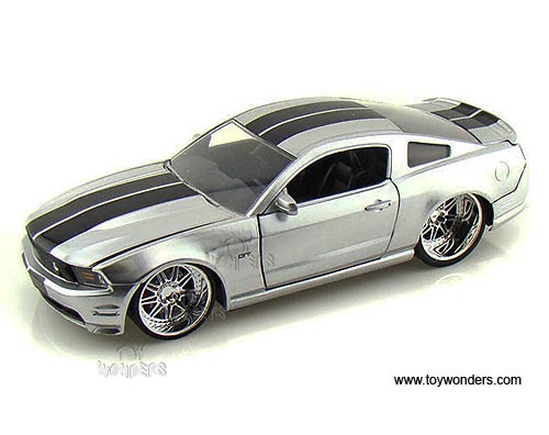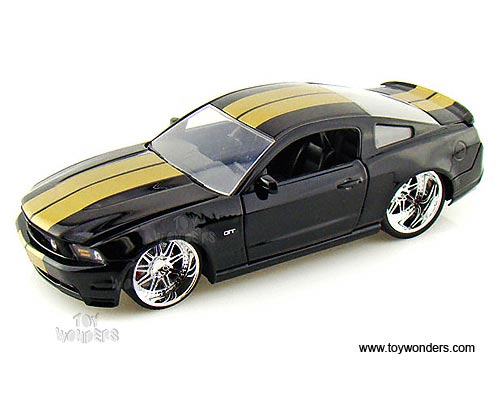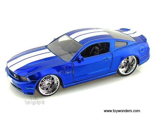 92205 Jada Toys Bigtime Muscle - 2010 Ford Mustang GT Hard Top. 1:24 scale diecast collectible model car. This Ford Mustang GT is an 8.25"L x 3.25"W x 2.25"H die cast metal with details engine and openable doors, hood & trunk. This Ford Mustang GT is manufactured by Jada Toys. Big Time Muscle. Individually packed in a window box WB. Box size: 10"L x 4.75"W x 4.75"H. 6 pcs per inner box. 92205 is in assorted colors with stripes.