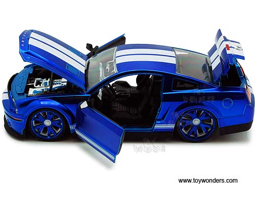 91844WS BigTime Muscle - 2008 Ford Shelby GT-500KR Hard Top. 1:24 scale diecast collectible model car. This Ford Shelby GT500KR is an 8.5"L x 3.25"Wx 2.5"H die cast metal with V-Spek rims, open able doors, hood & trunk. This Ford Shelby GT 500KR is manufactured by Jada Toys. Big Time Muscle. 4 pcs per display box. 16 pcs per inner box. 91844 in assorted colors.