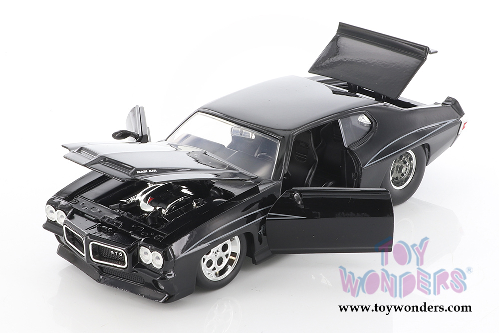 31646DP1 Jada Toys Bigtime Muscle | 1971 Pontiac® GTO Judge Hardtop. 1:24 scale diecast model car. This Pontiac® is an 8.5"L x 3.25"W x 2.25"H diecast metal car with openable doors, hood and trunk. Freewheeling. Big Time Muscle. The Pontiac® GTO is manufactured by Jada Toys. 4 pcs per display box. Item 31646DP1 is in assorted colors. 16 pcs. per inner box.