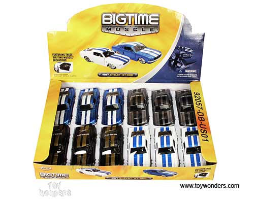 92057KN Jada Toys Bigtime Muscle - 1967 Shelby GT-500 Hard Top. 1:32 scale diecast collectible model car. This Shelby GT500 is a 5.5"Lx 2.25"Wx 1.5"H die cast metal car with openable doors and pull back motor action. Shelby Performance rims. This 1967 Shelby GT-500 is manufactured by Jada Toys Big Time. 12 pcs per display box in assorted colors with strips on top. 36 pcs per inner.