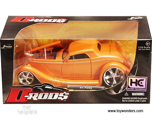 90770 D-RODZ 1934 Ford Hard Top. 1:24 scale diecast model car. This Ford is an 8" long die cast model with openable doors, hood & trunk. D-ROD$ Hobby Exclusive. Jada Toys. Window Box. Jada Toys. Also known as D-Rod, D-Rods, D-Rodz, D Rod, D Rods, D Rodz, DRod, DRodz, DRods. 90770 in MEDIUM PEARL and ORANGE colors. WB To see more die-cast lowriders (click here). To see more Jada collector die-cast models (click here). Case pack: 12 pcs. Sold in lots of 6 pcs. Price quoted is for 1 pcs.