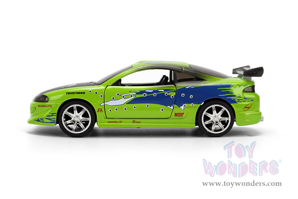 Jada Toys Fast & Furious - Brian's Mitsubishi Eclipse Damaged Version (1/32 scale diecast model car, Glossy Green) 36356
