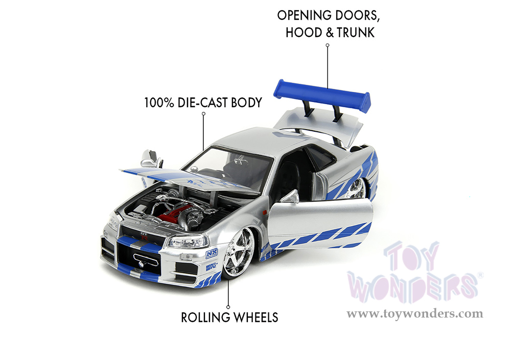 Jada Toys Fast & Furious - Brian's Nissan Skyline GT-R Hard Top (1/24 scale diecast model car, Candy Silver) 97158/4