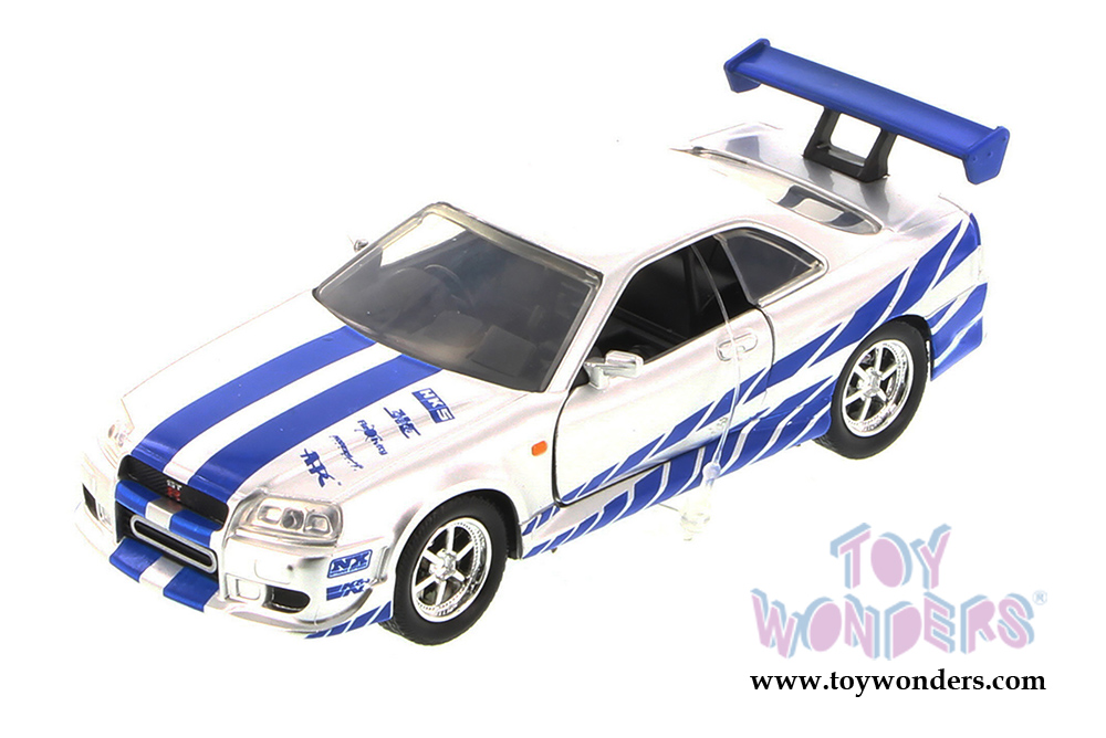 Jada Toys Fast & Furious - Brian's Nissan Skyline GT-R Hard Top (1/32 scale diecast model car, Silver w/Blue stripes) 97184