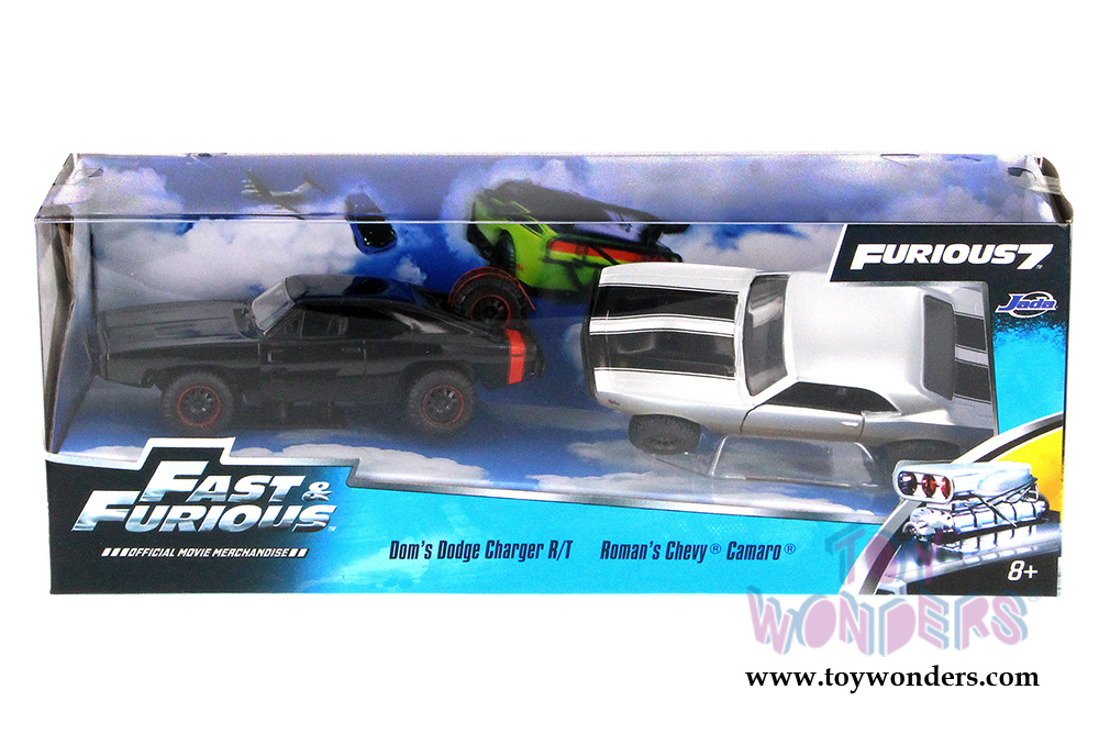 Jada Toys Fast & Furious - Dom's 1970 Dodge Charger Off-Road and Roman's 1967 Chevy Camaro Off-Road Twin Pack Hard Top (1970, 1967, 1/32 scale diecast model car, Asstd.) 97163