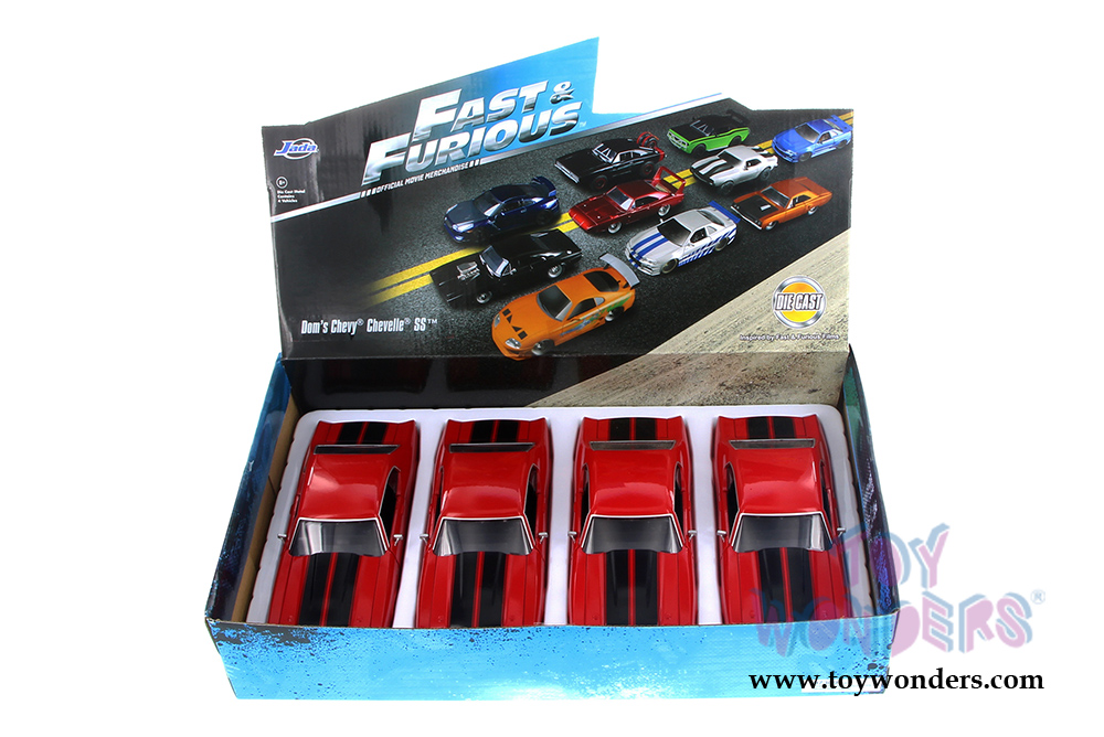 97309 Jada Toys Fast & Furious - 1970 Dom's Chevy Chevelle SS Hardtop. 1:24 scale diecast collectible model car. This Chevrolet is an 8.5"L x 3.5"W x 2.5"H diecast metal car. Free wheeling with openable hood, trunk, and doors. The Chevy Chevelle SS is manufactured by Jada Toys. 4 pcs per display box in GLOSSY RED color. 16 pcs per inner.