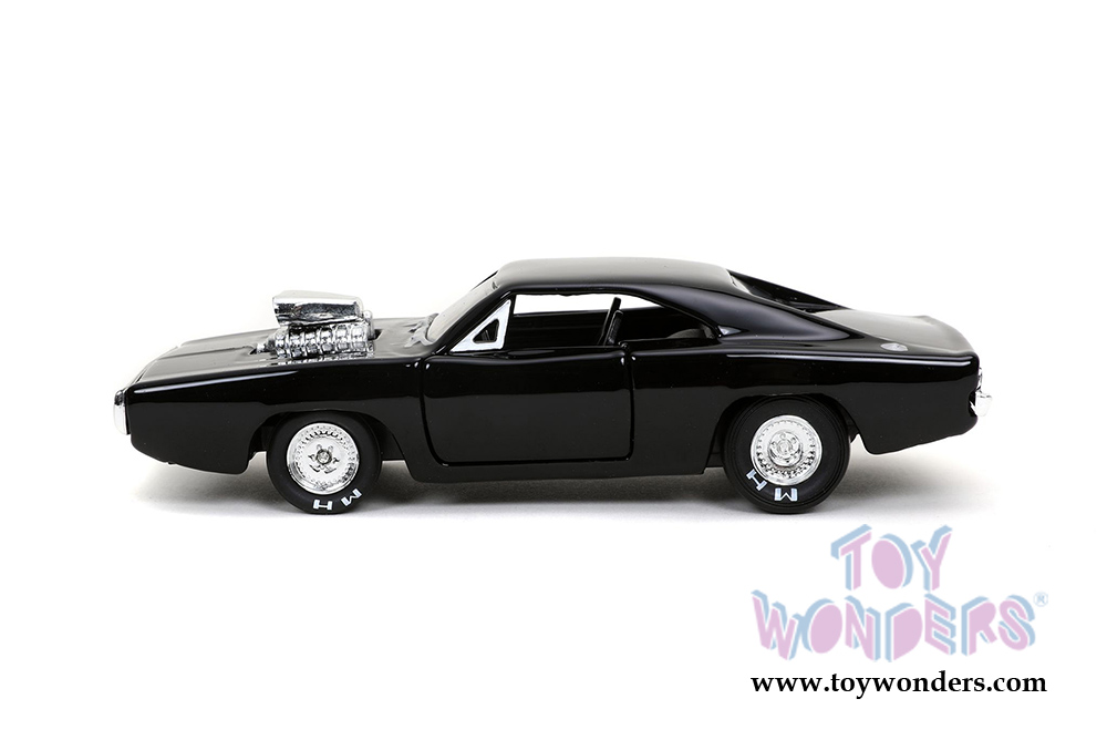 32215 Jada Toys Fast & Furious - Dom's 1970 Dodge Charger Hardtop. 1:32 scale diecast collectible model car. This Dodge is 5"L x 2"W x 1.75"H diecast classic muscle cars from the Fast & Furious F9 (2021 movie). Collector's DIE CAST Series. Openable doors. This Dodge Charger is manufactured by Jada Toys. It comes individually packed in a window box. Window box is 6"L x 3"W x 4.5"H. Item 32215 is in Black.