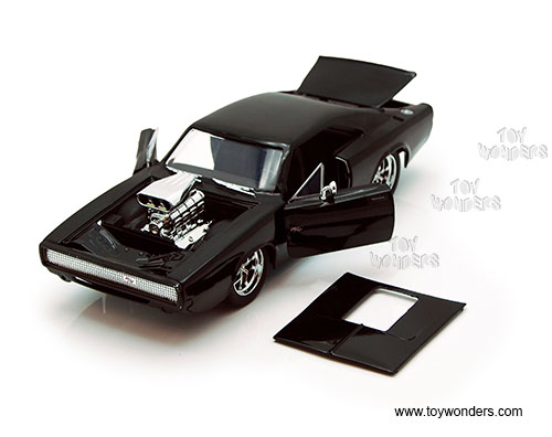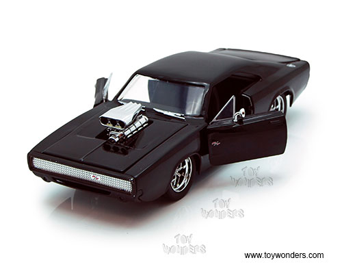 Jada Toys Fast & Furious - Dom's Dodge Charger With Engine Blower Hard Top (1970, 1/24 scale diecast model car, Black) 97083