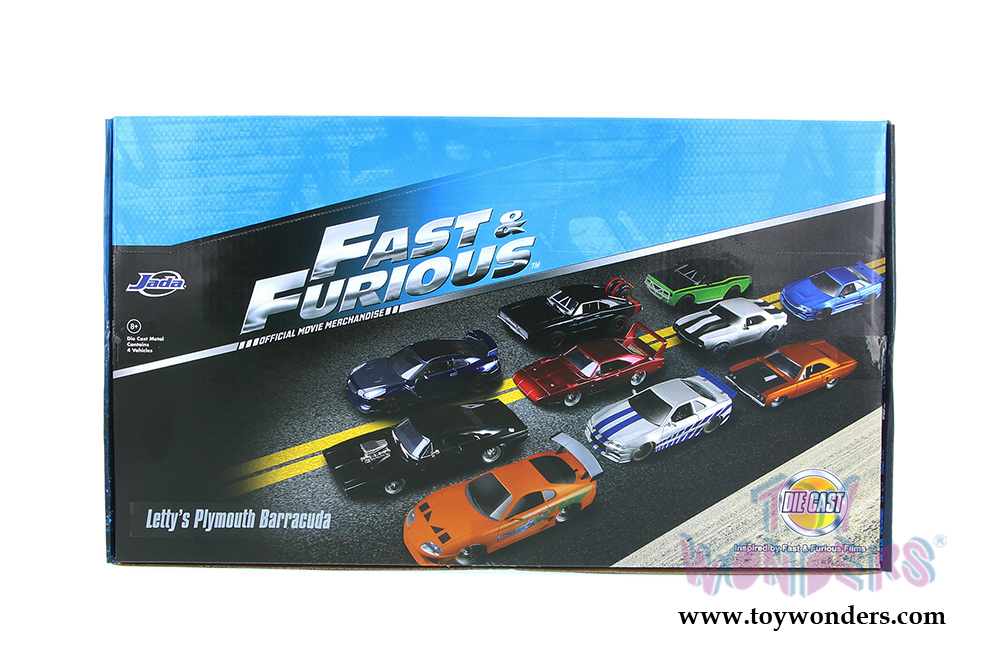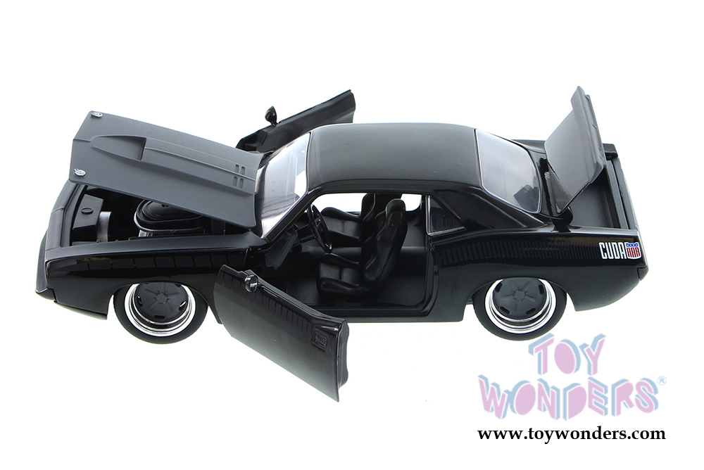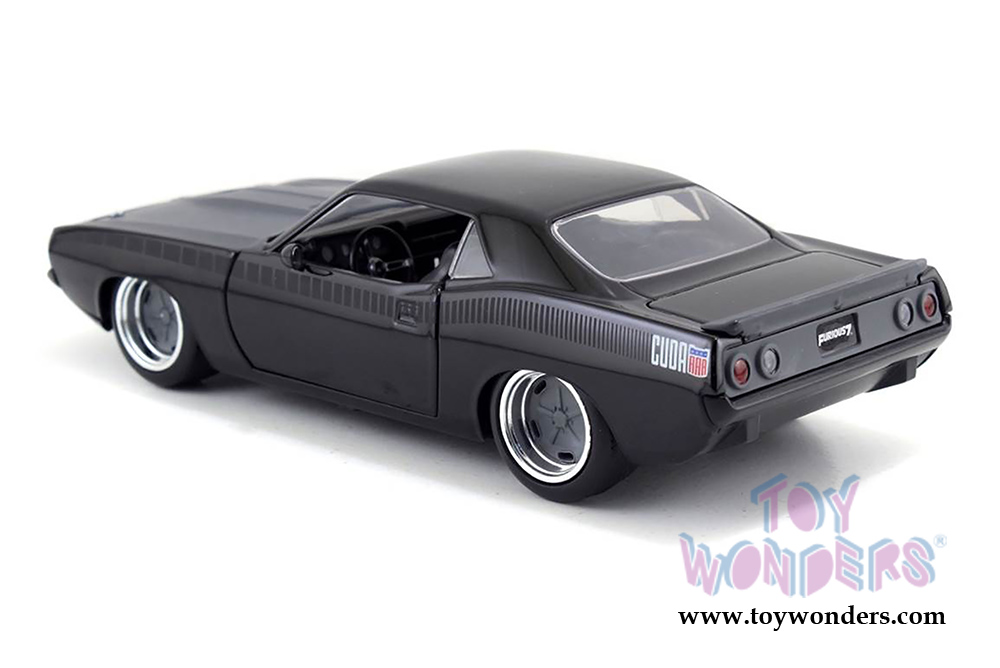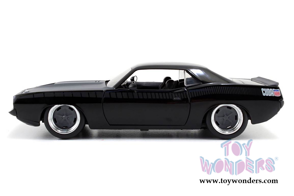 97310 Jada Toys Fast & Furious - Letty's Plymouth Barracuda Hardtop. 1:24 scale diecast collectible model car. This Plymouth Barracuda is an 8.5"L x 3"W x 2.5"H diecast metal car. Freewheeling with openable doors, hood, and trunk. The Plymouth Barracuda is manufactured by Jada Toys. Item 97310 is in BLACK. 4 pcs per display box in assorted colors. 6 pcs per inner box.