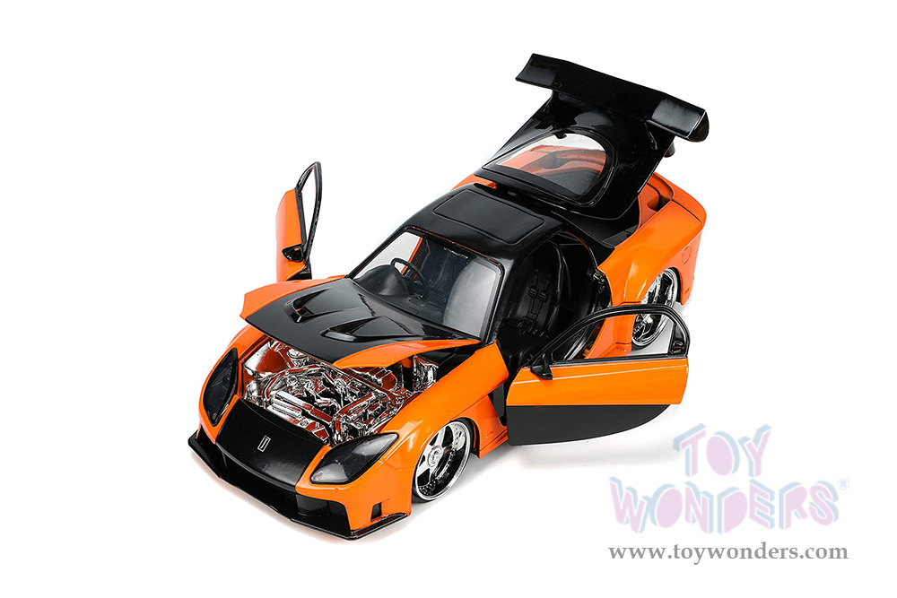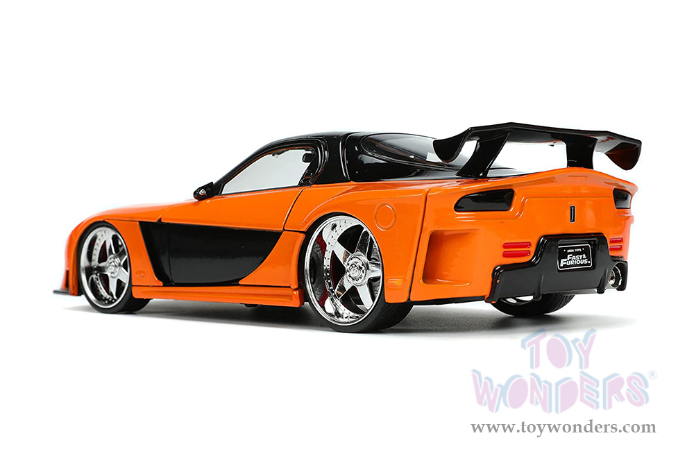 Jada Toys Fast & Furious - Mazda RX-7 Widebody with Han Figure (1/24 scale diecast model car, Orange/Black) 33174