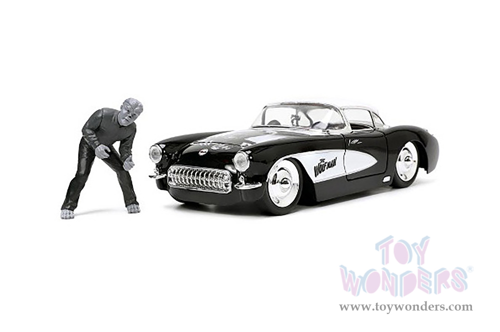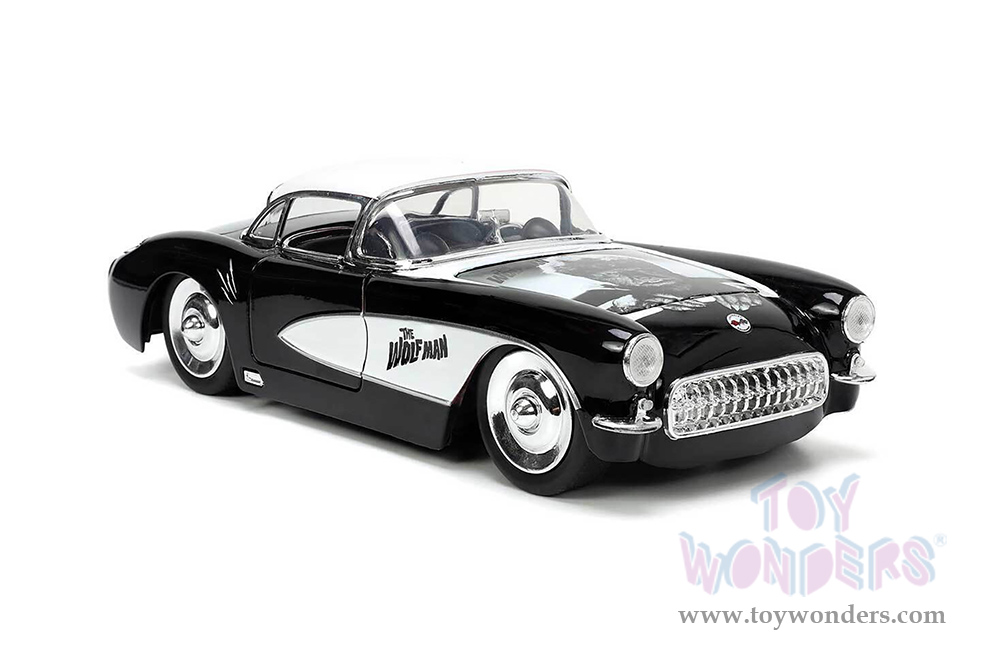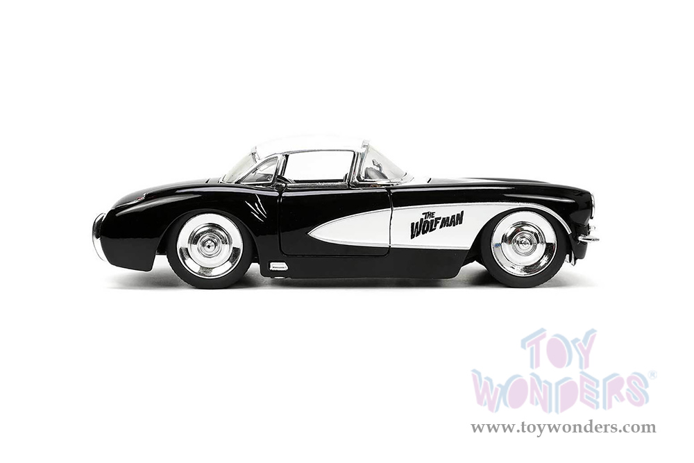 Jada Toys - Hollywood Rides | Chevrolet® Corvette™ with Wolfman Diecast Figure "Universal Monsters" (1957, 1/24, diecast model car, Black/White) 32195/4