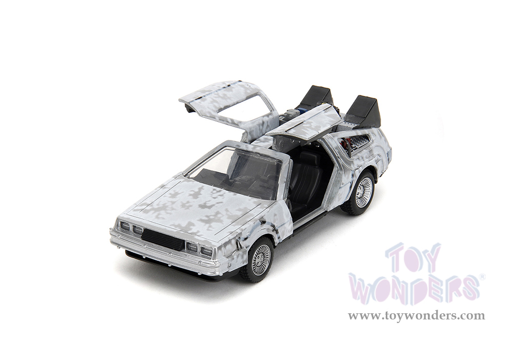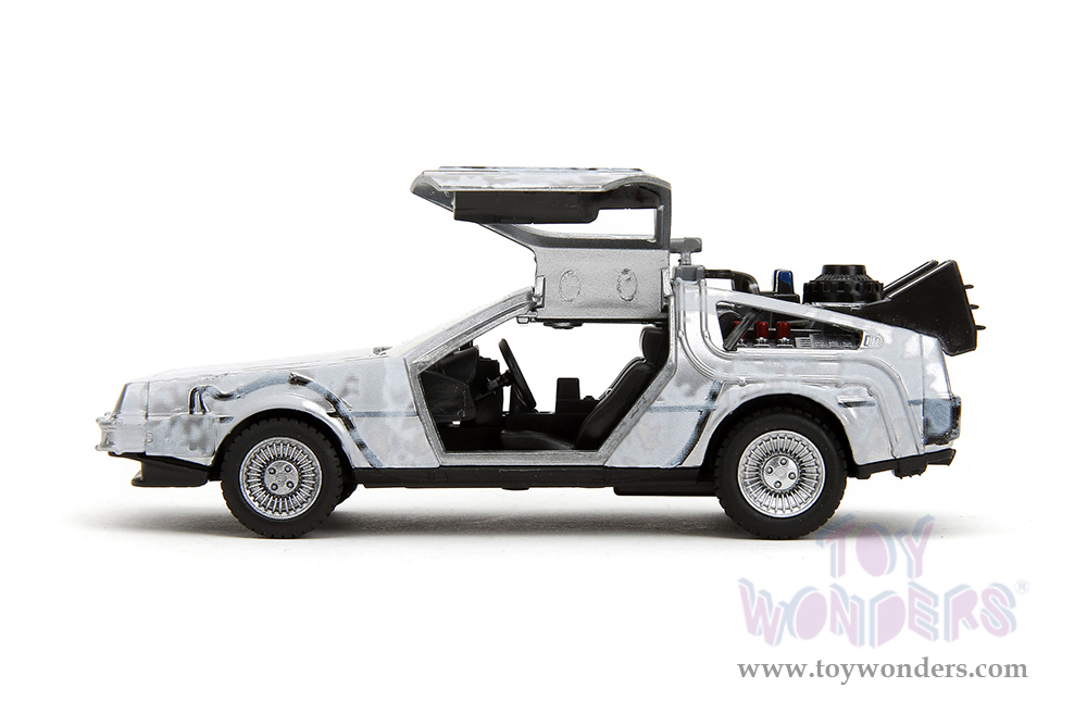 Jada Toys - Hollywood Rides | DeLorean DMC (Time Machine) "Back to the Future" with Dr. E. Brown's Enterprise truck 40th Anniversary Special Packaging (1/32 scale diecast model car, Frost Brush Metal) 36848