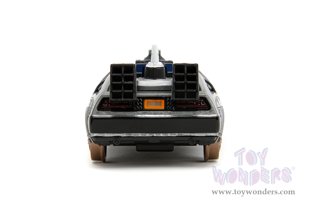 Jada Toys - Hollywood Rides | DeLorean DMC (Time Machine) Train Wheel Version "Back to the Future Part III" (1990) Movie (1/32 scale diecast model car, Brush Metal) 34786