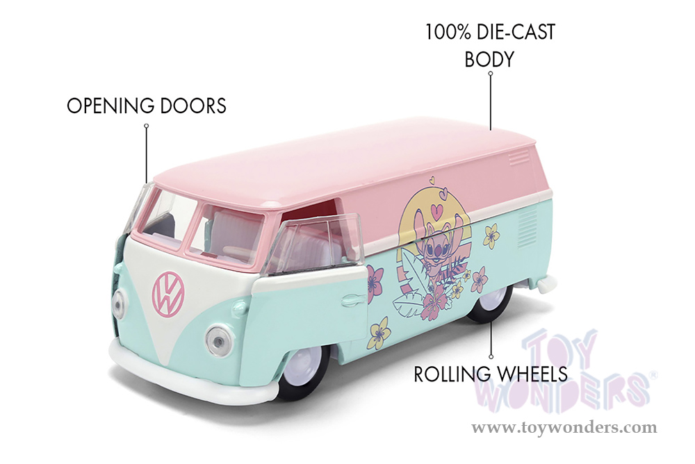 Jada Toys - Hollywood Rides | Disney Stitch Volkswagen Bus (1961, 1/32 scale diecast model car, Pastel Pink/Pastel Blue) 36358