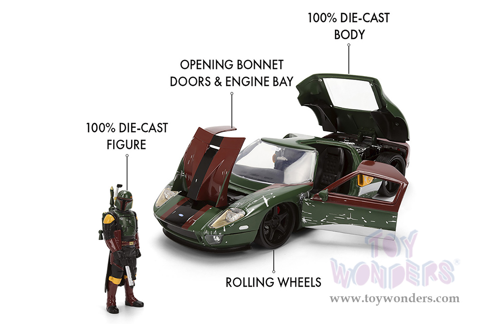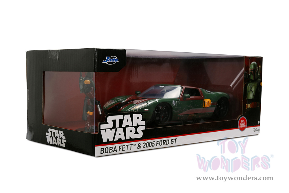 Jada Toys - Hollywood Rides | Ford GT (Weathered) with Boba Fett™ Figure "Star Wars" (2005, 1/24, diecast model car, Green/Brown) 36909