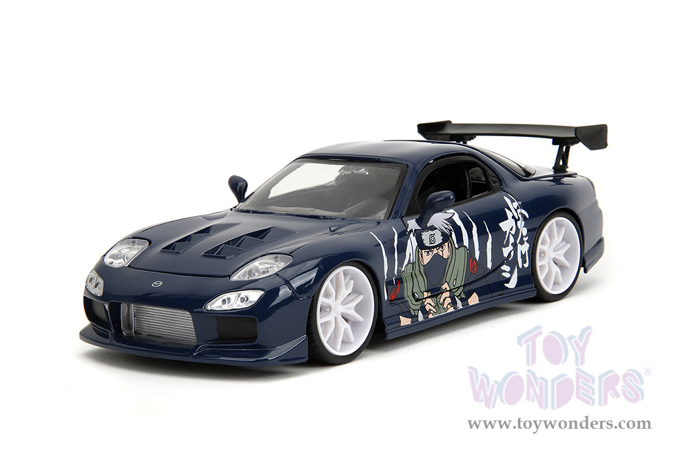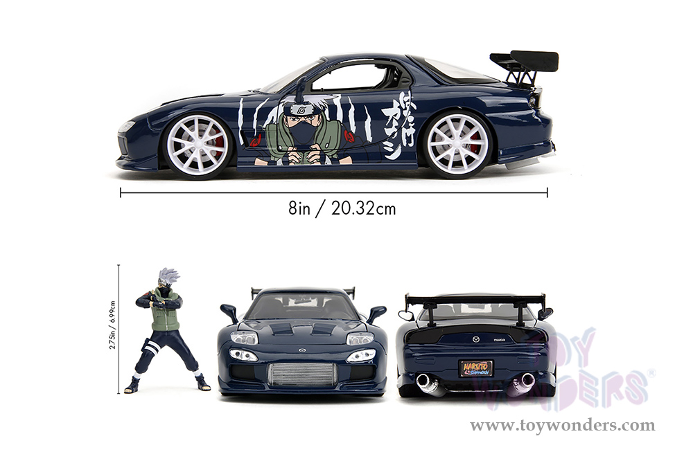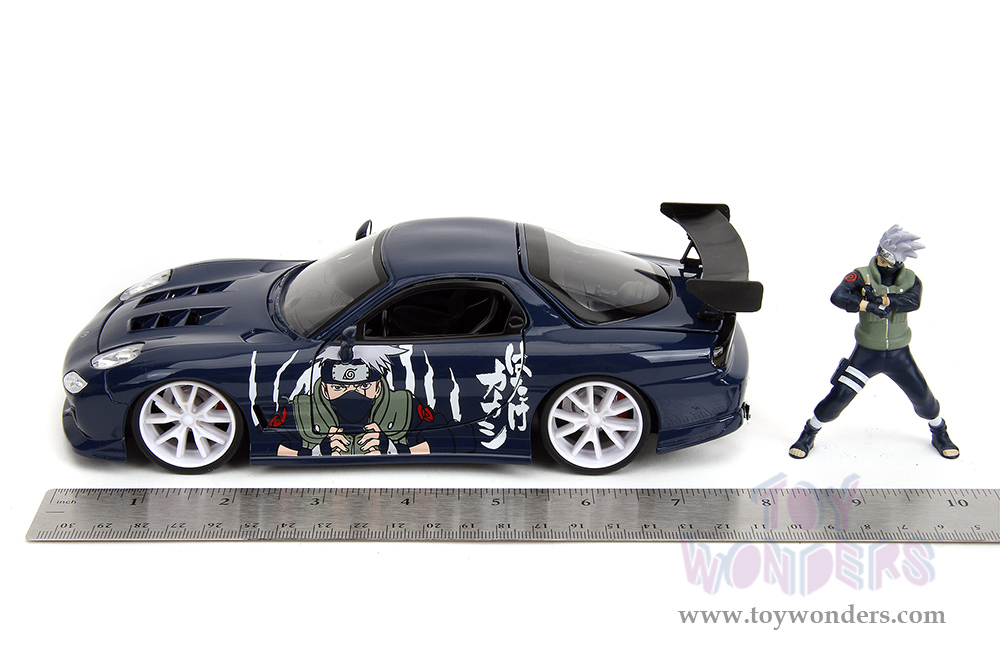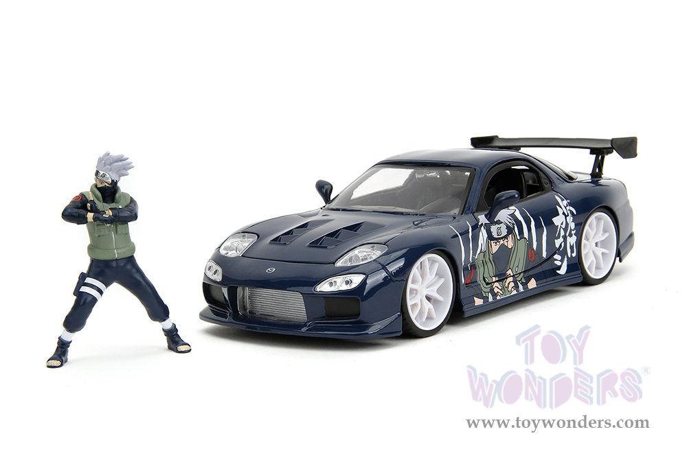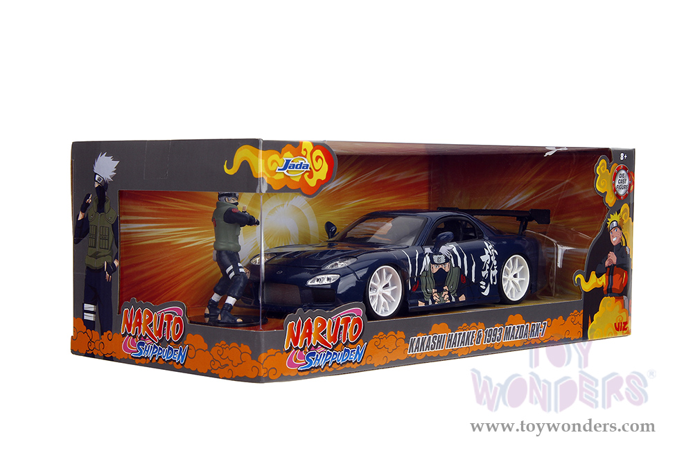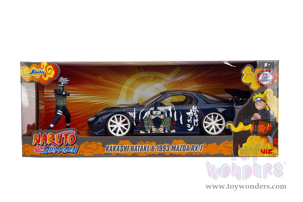 Jada Toys - Hollywood Rides | Mazda RX-7 with Kakashi Hatake Diecast Figure "Naruto Shippuden" (1993, 1/24, diecast model car, Dark Blue) 35349