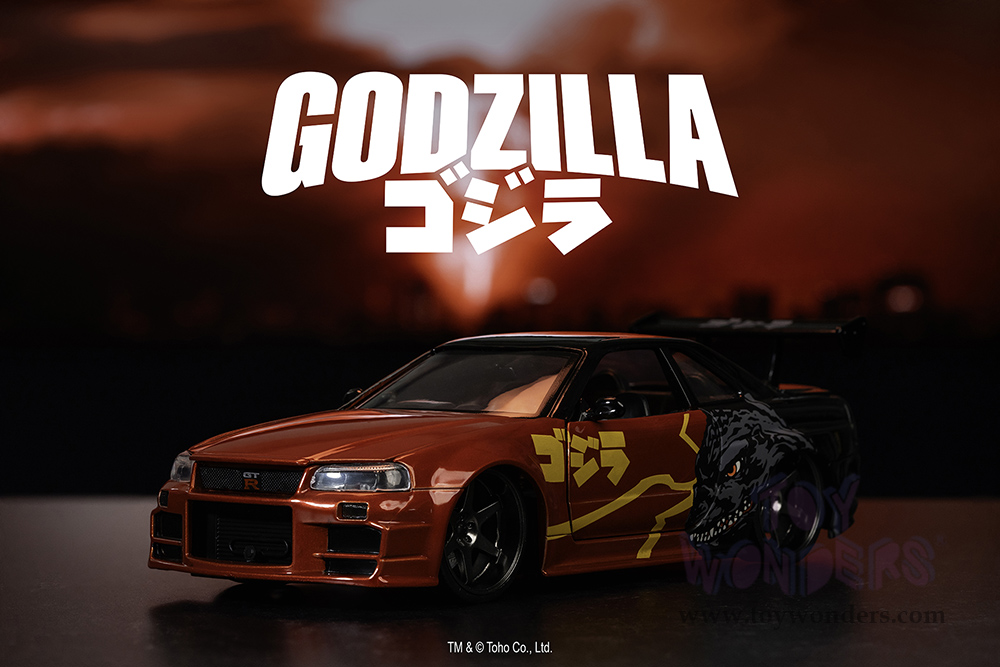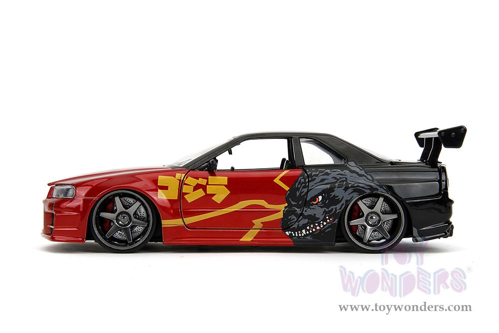 Jada Toys - Hollywood Rides | Nissan Skyline GT-R (34) RHD "Godzilla vs. Destoroyah" (2002, 1/24, diecast model car, Red/Black) 35133