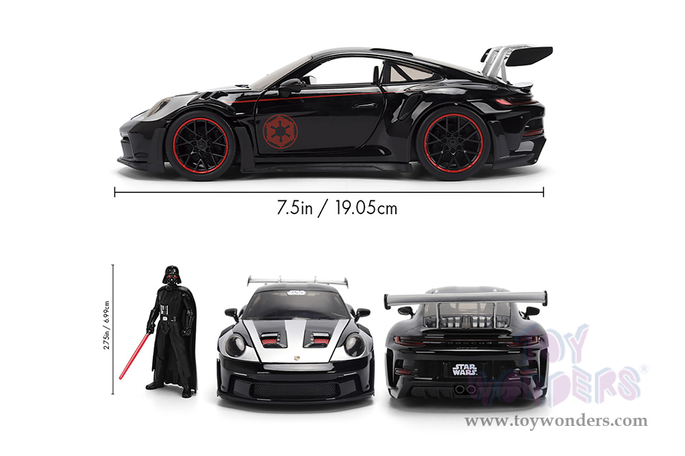 Jada Toys - Hollywood Rides | Porsche 911 GT3 RS (992) with Darth Vader™ Diecast Figure "Star Wars" (1/24, diecast model car, Black/Silver) 36477