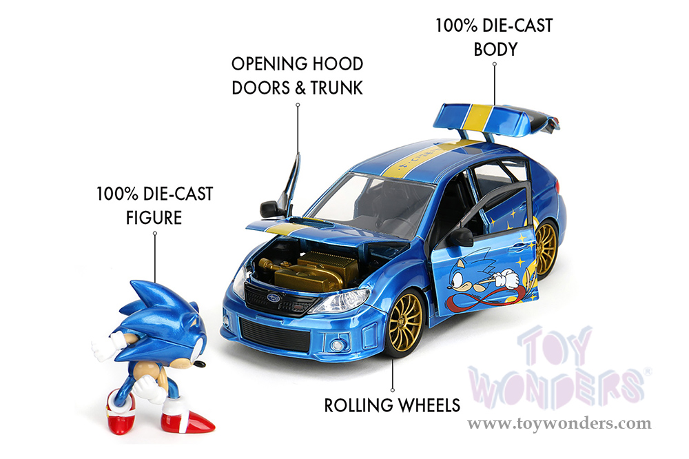 Jada Toys - Hollywood Rides | Subaru Impreza WRX STI with Sonic Diecast Figure "Sonic The Hedgehog" (2012, 1/24, diecast model car, Blue) 35871