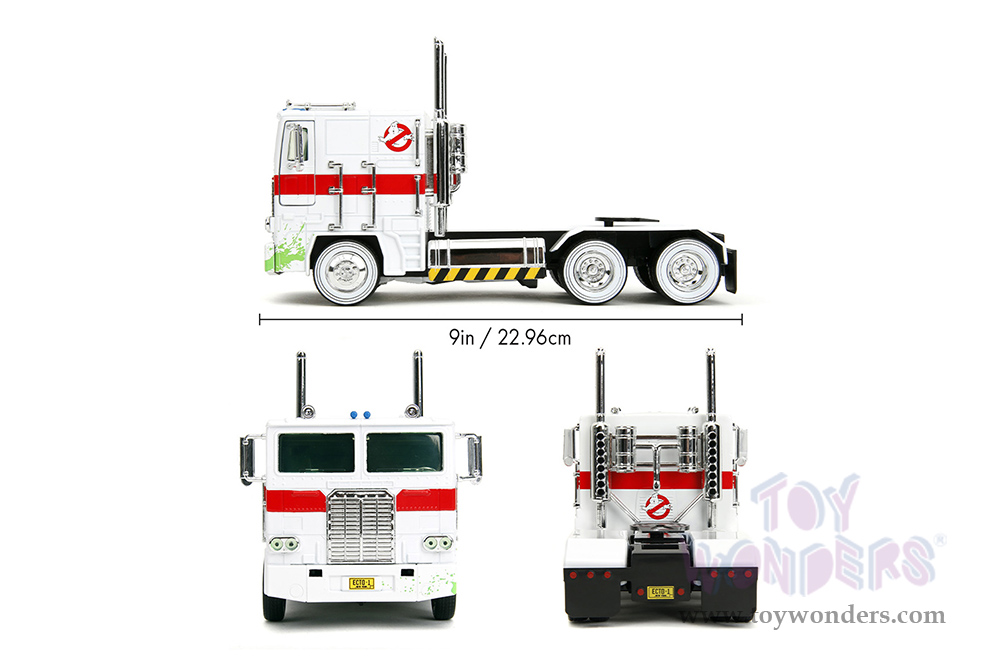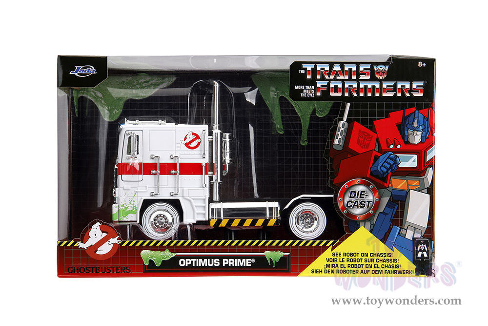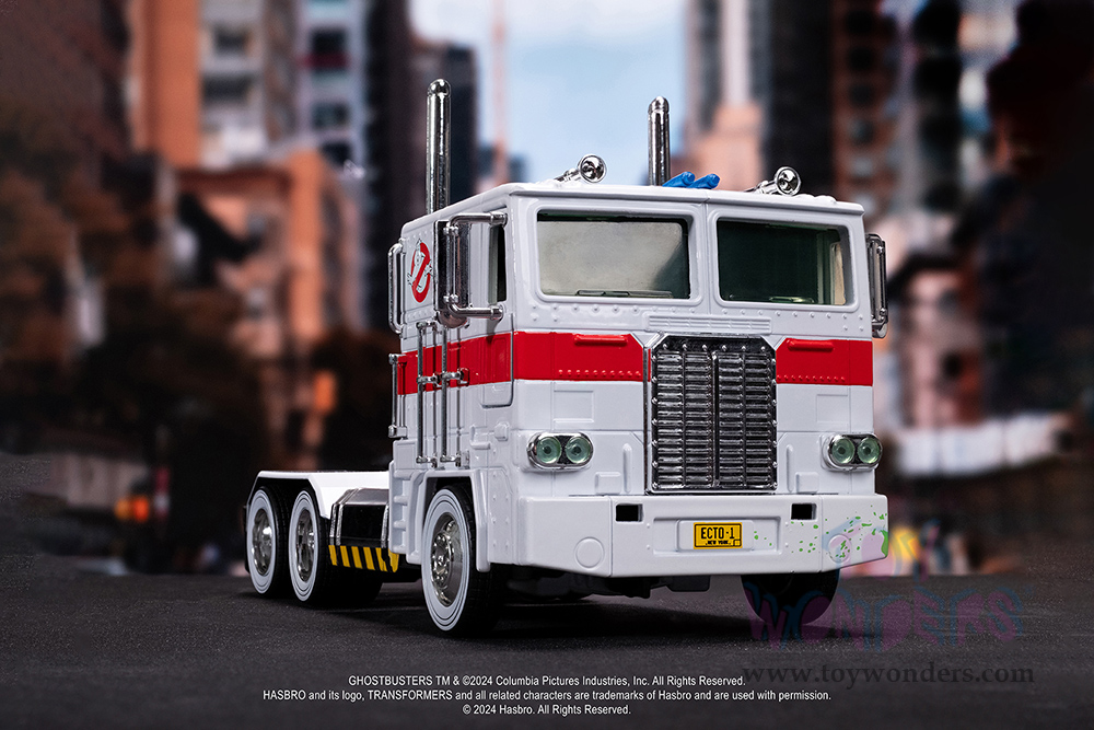 Jada Toys - Hollywood Rides | TRANSFORMERS G1 Optimus Prime® Truck Ghostbusters Ecto-1 Crossover (1/24, diecast model car, White) 35572
