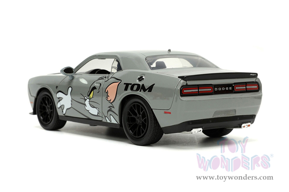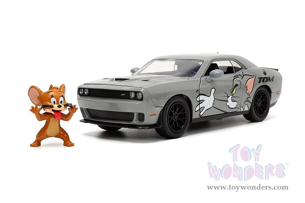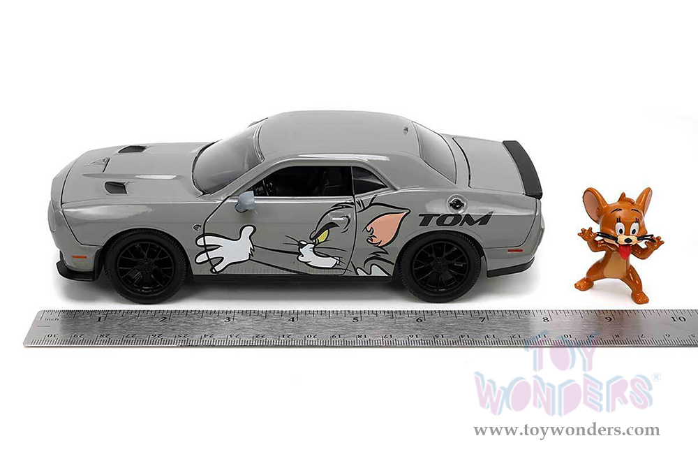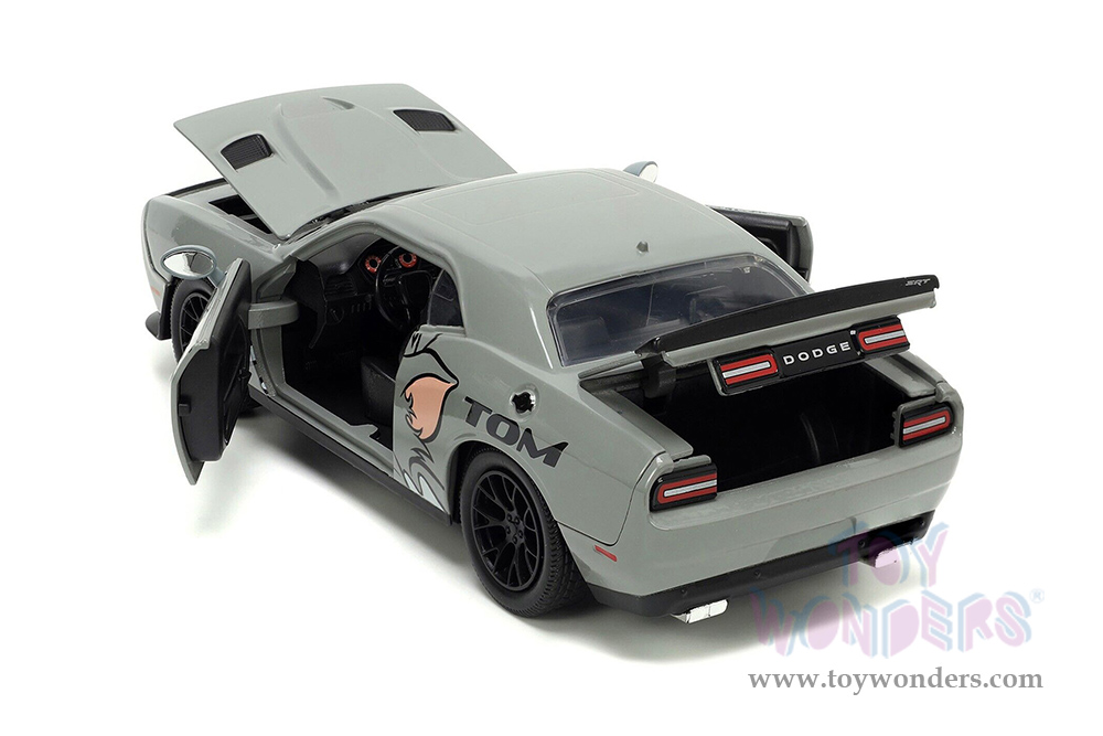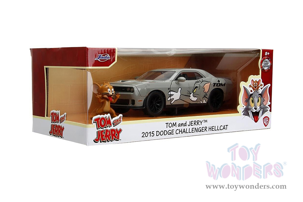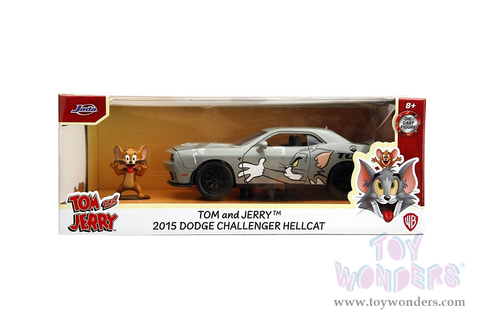 Jada Toys - Hollywood Rides | Tom and Jerry Dodge Challenger Hellcat with Jerry Diecast Figure (2015, 1/24, diecast model car, Gray) 33722