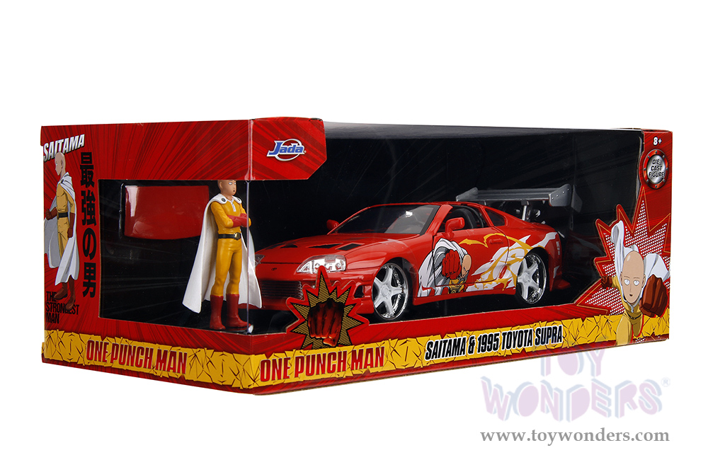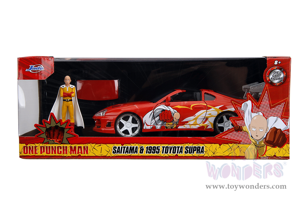 Jada Toys - Hollywood Rides | Toyota Supra with Saitama Diecast Figure "One Punch Man" (2015-2019) TV Series (1995, 1/24, diecast model car, Red) 35347