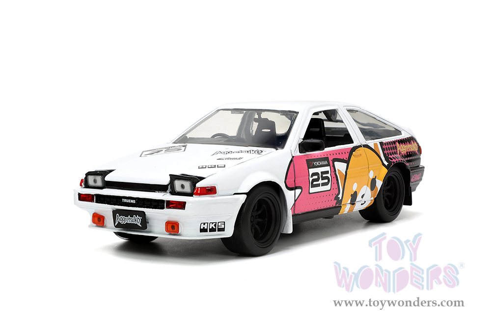 Jada Toys - Hollywood Rides | Toyota Trueno (AE86) with Aggretsuko Figure (1986, 1/24, diecast model car, White/Pink) 33725