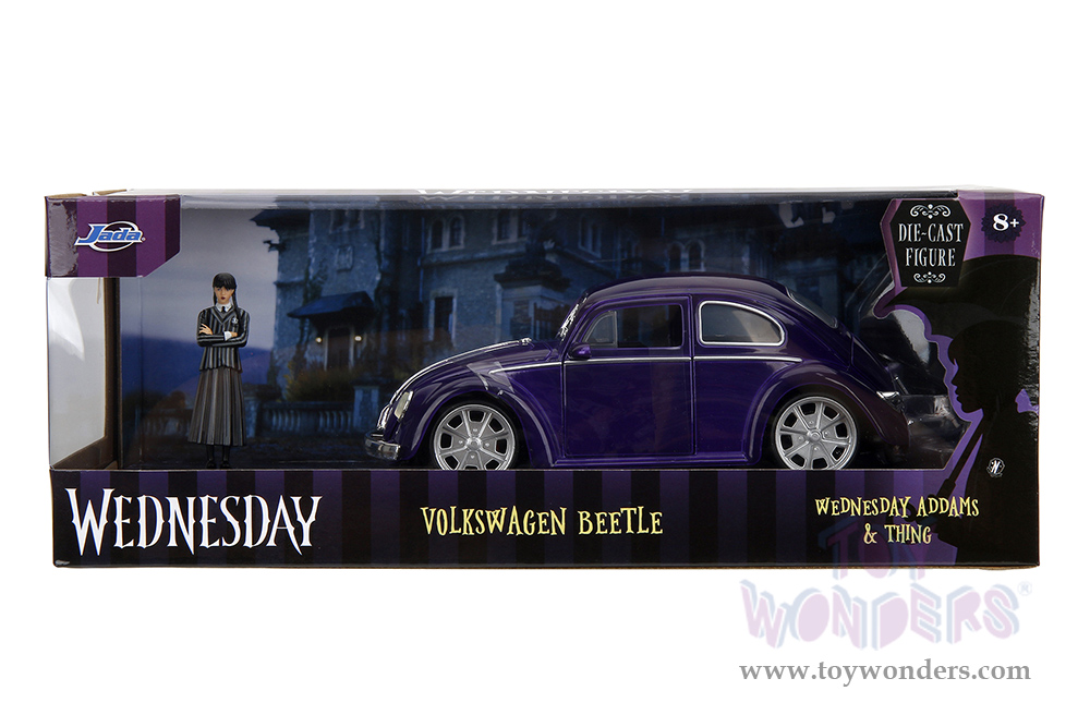 Jada Toys - Hollywood Rides | Volkswagen Beetle with Wednesday Addams and Thing Diecast Figures (1/24, diecast model car, Purple) 35131