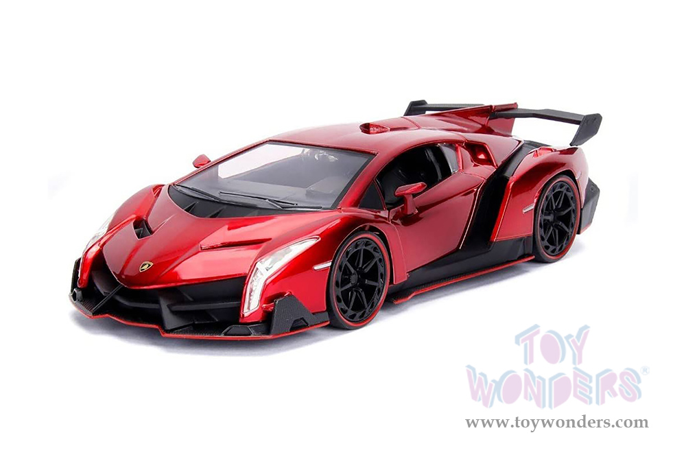 34212/4 Jada Toys Hyper-Spec - Lamborghini Veneno Hardtop. 1:24 scale diecast collectible model car. This Lamborghini is an 8.5"L x 4"W x 2"H diecast classic muscle car. Openable doors and engine compartment. This Lamborghini is manufactured by Jada Toys. It comes individually packed in a window box. Window box is 10"L x 4.75"W x 4.75"H. Item 34212/4 is in Red and Black.