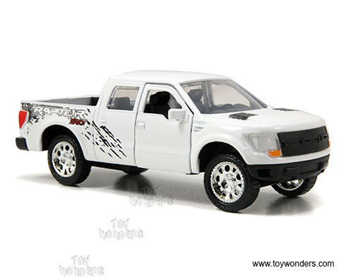 97013 Jada Toys Just Trucks - 2011 Ford F-150 SVT Raptor Pickup Truck. 1:32 scale diecast collectible model car. This Ford F150 SVT Raptor Pick-up is a 5"L x 2"W x 1.75"H die cast with openable doors. Rims: Raptor Baja. This Ford F 150 SVT Raptor Pick up is manufactured by Jada Toys. 12 pcs per display in assorted colors. 60 pcs per inner box.