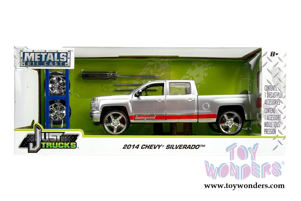 54027/W23 Jada Just Trucks - Assorted Pack Wave 23. 1:24 scale diecast collectible model cars. These cars are between 7" and 8.5" long diecast metal with openable doors, hood, and tailgate. Assortment includes 4 vehicles. Each box contains one vehicle, one tire rack, 1 screwdriver, 2 extra axles and 4 extra wheels. These cars are manufactured by Jada Toys. Individually packed in a window box WB. Box size: 12.5"L x 5"W x 5"H. 54027/W23 is in assorted colors. Sold by the case.