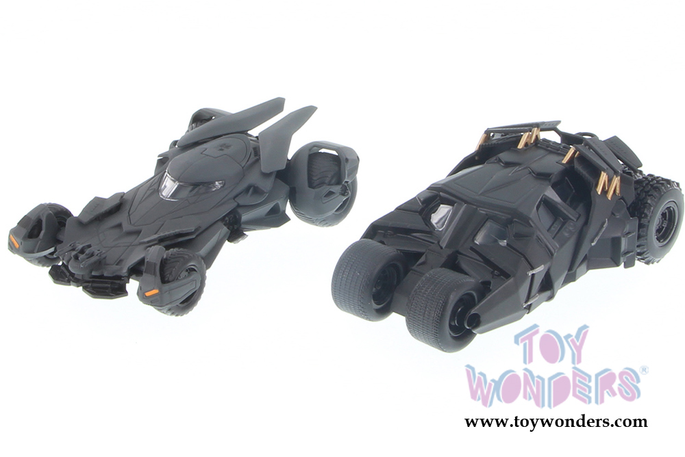98266DP2 Jada Toys - Metals Die Cast | Batmobile™ Assortment. 2008 The Dark Night Tumbler Batmobile and 2016 Batman vs Superman Batmobile. 1:32 scale diecast collectible model car. These Batmobiles are 5.25"Lx 2"Wx 1.25"H die cast metal cars with Pull Back action. These Batmobiles are manufactured by Jada Toys. 60 pcs per inner box. 12 pcs per display box in assorted colors.