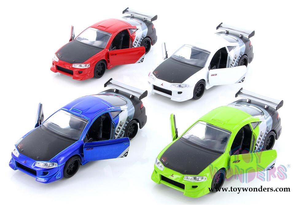 99130DP1 Metals Die Cast | JDM Tuners™ 1995 Mitsubishi Eclipse Hardtop. 1:32 scale diecast collectible model car. This Mitsubishi is a 5.25"Lx 2.25"Wx 1.5"H diecast metal cars with opening doors and pullback action. This car is manufactured by Jada Toys.