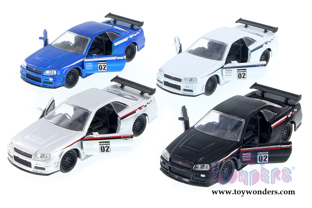 99140DP1 Jada Toys - Metals Die Cast | JDM Tuners™ 2002 Nissan Skyline GT-R Hardtop. 1:32 scale diecast collectible model car. This Nissan is a 5.25"Lx 2"Wx 1.5"H diecast metal cars with opening doors. This car is manufactured by Jada Toys. 12 pcs per display box. Item 99140DP1 is in assorted colors. 60 pcs per inner.