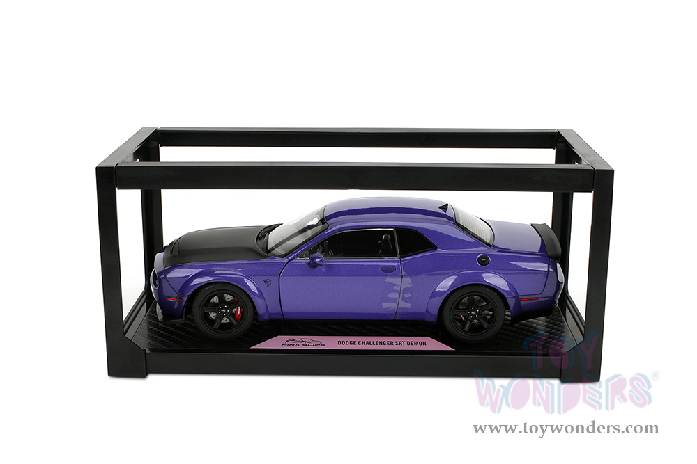 Jada Toys Pink Slips - Dodge Challenger SRT Demon with Display Base (1/18 scale diecast model car, Purple/Black) 36473