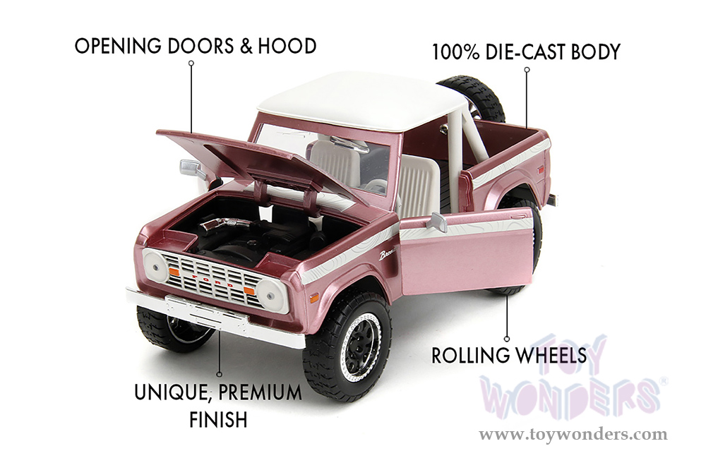 Jada Toys Pink Slips - Ford Bronco with Display Base (1973, 1/24 scale diecast model car, Pink) 34896