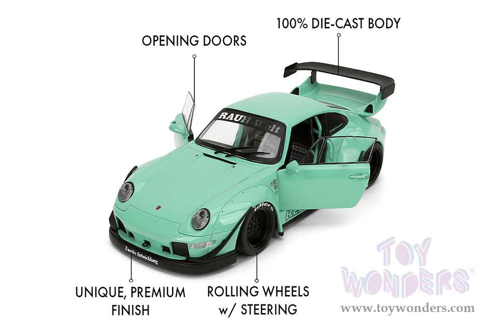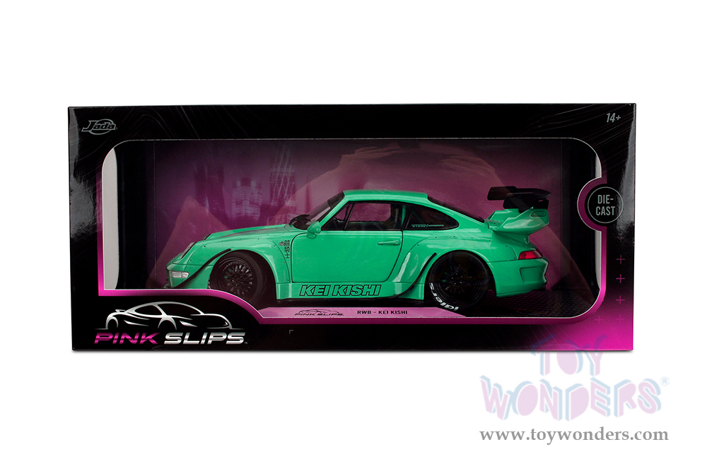 Jada Toys Pink Slips - Porsche RWB Body Kit Kei Kishi with Display Base (1/18 scale diecast model car, Glossy Teal) 36463