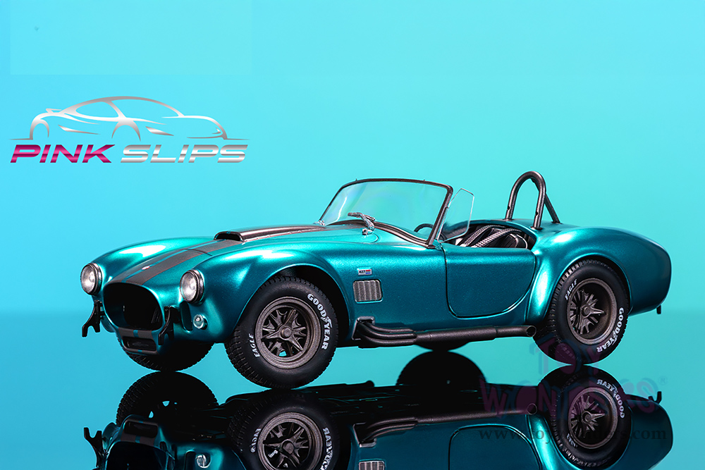 Jada Toys Pink Slips - Shelby® Cobra 427 MK2 with Display Base (1/18 scale diecast model car, Candy Teal) 36467