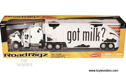 Jada Toys Road Rigz Got Milk - Peterbilt 387 Hauler Tractor Trailer (1/32 scale diecast model car, White) 91671