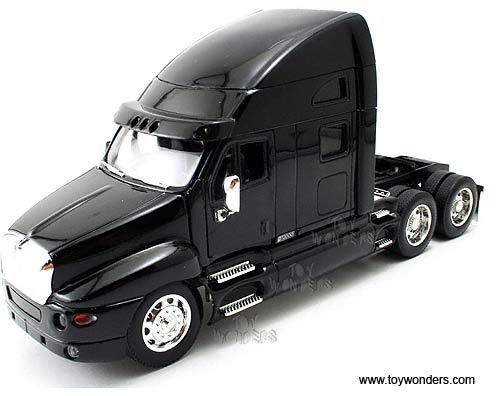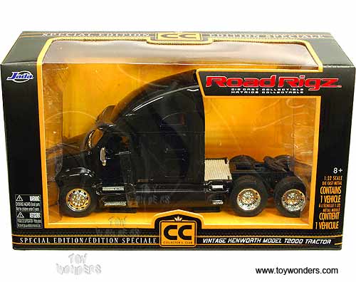 23120BK Jada Toys RoadRigz - Kenworth T2000 Model Tractor Trailer Cab. 1:32 scale diecast collectible model car. This Kenworth T-2000 is a 10.75"Lx 3.25"Wx 5"H die cast metal car with openable hood & doors. Free wheeling. This Kenworth T2000 truck is manufactured by Jada Toys. Individually packed in a window box. Box size: 12"Lx 4.75"Wx 7"H. 23120 is in BLACK color.
