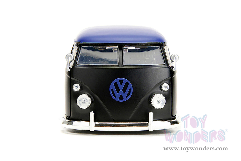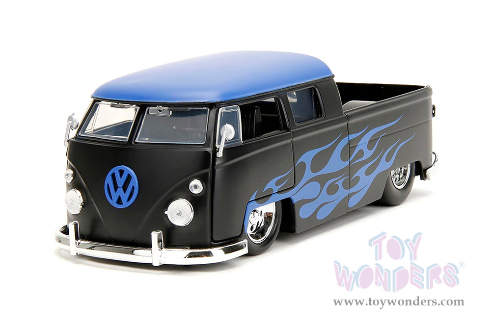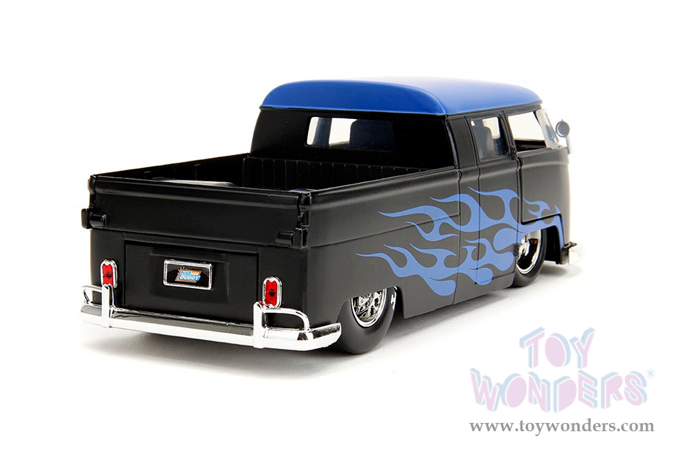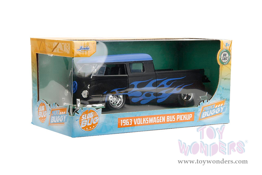 Jada Toys - Volkswagen Bus "Punch Buggy" Pickup Truck (1963, 1/24 scale diecast model car, Matte Black/Blue Top/Blue flames) 34232/4