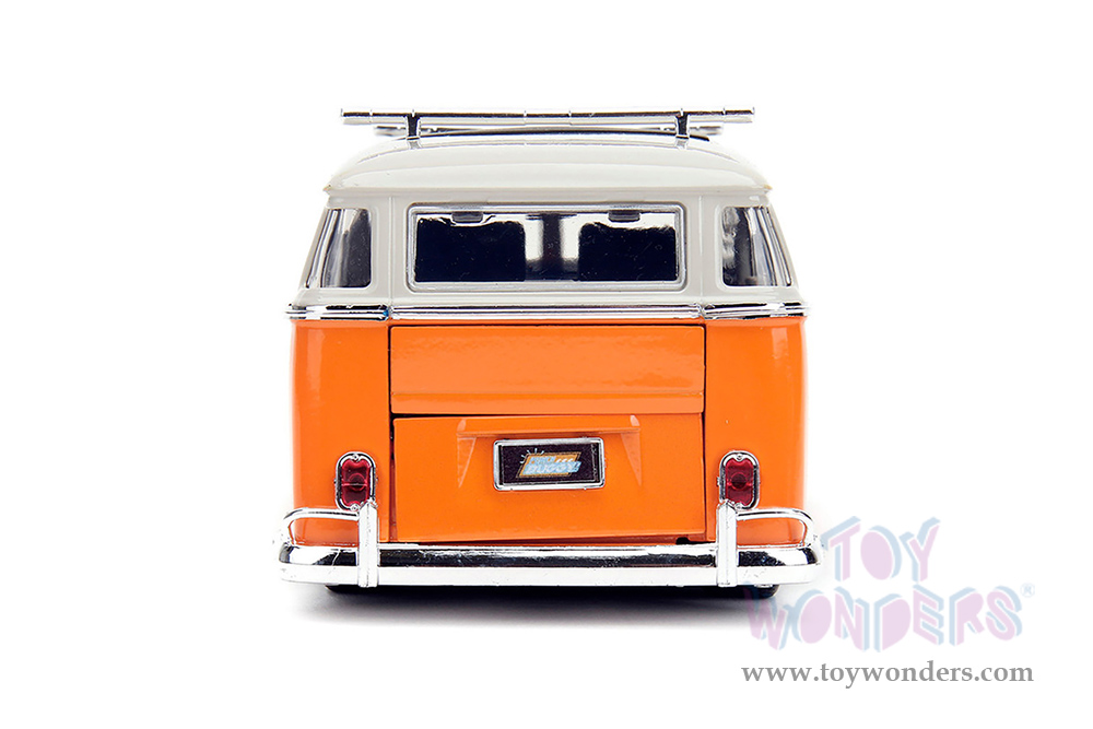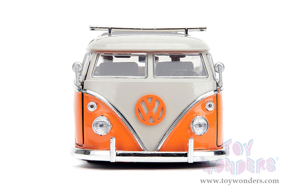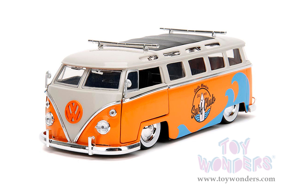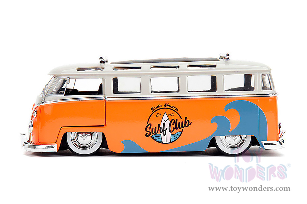 Jada Toys - Volkswagen Bus "Punch Buggy" Santa Monica Surf Club with Roof Rack and Surfboard (1962, 1/24 scale diecast model car, Orange w/ White) 34231/4