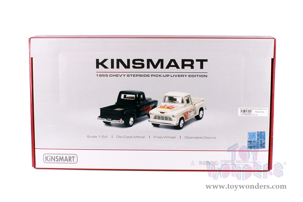 Kinsmart - Chevy® Stepside Pickup Truck Livery Edition with Flames (1955, 1/54 scale diecast model car, Asstd.) 3002DF
