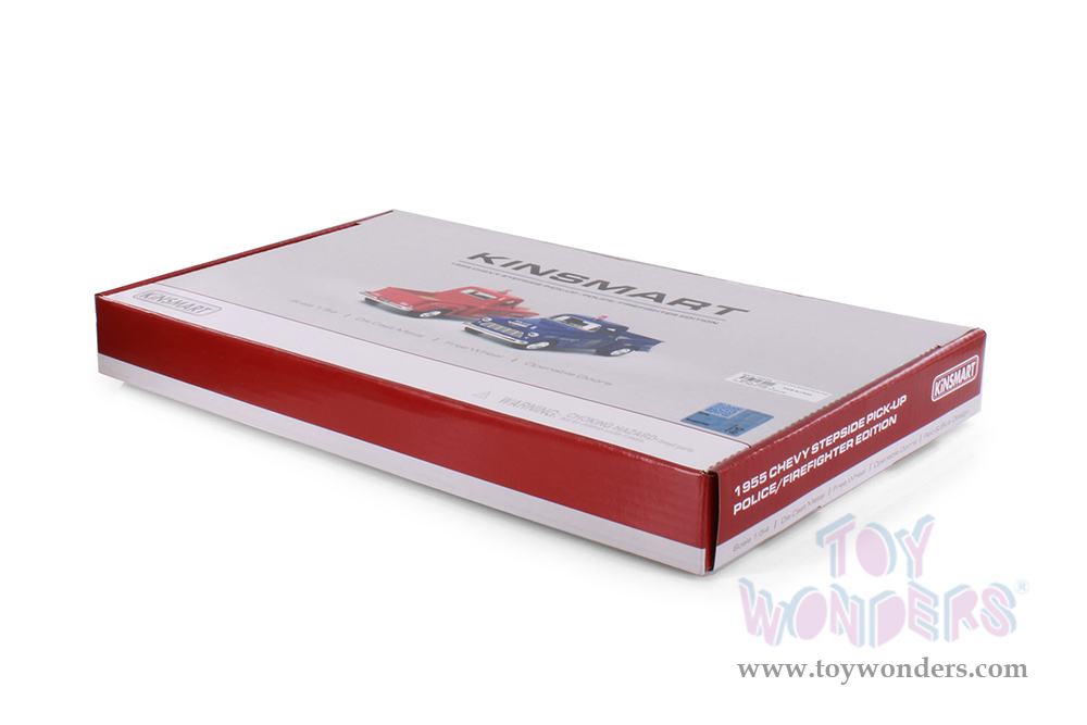 Kinsmart - Chevy® Stepside Pickup Truck Police/Firefighter Edition (1955, 1/54 scale diecast model car, Asstd.) 3002DPR