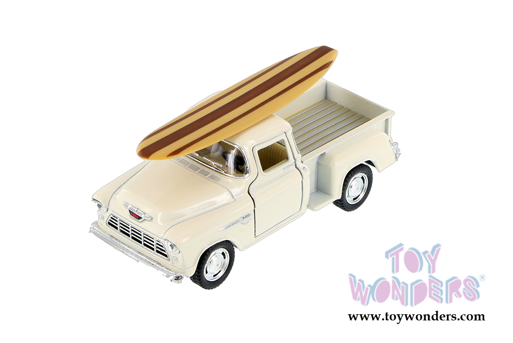 Kinsmart - Chevy Stepside Pickup with Surfboard (1955, 1/32 scale diecast model car, Asstd.) 5330DS1