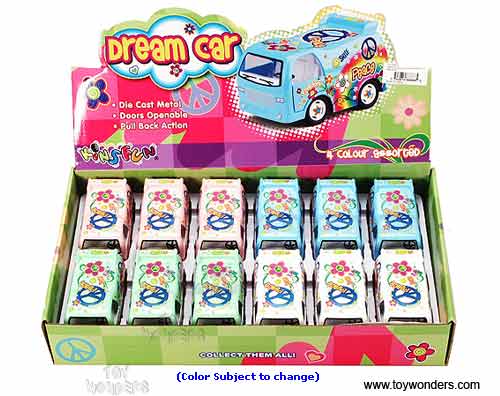 4102D Kinsmart - Dream Car. 3.5"L x 1.75"W x 2"H diecast car with openable doors & pull back motor action. 12 pcs/display box in assorted colors. This Dream Car is manufactured by Kinsmart/ Kinsfun.